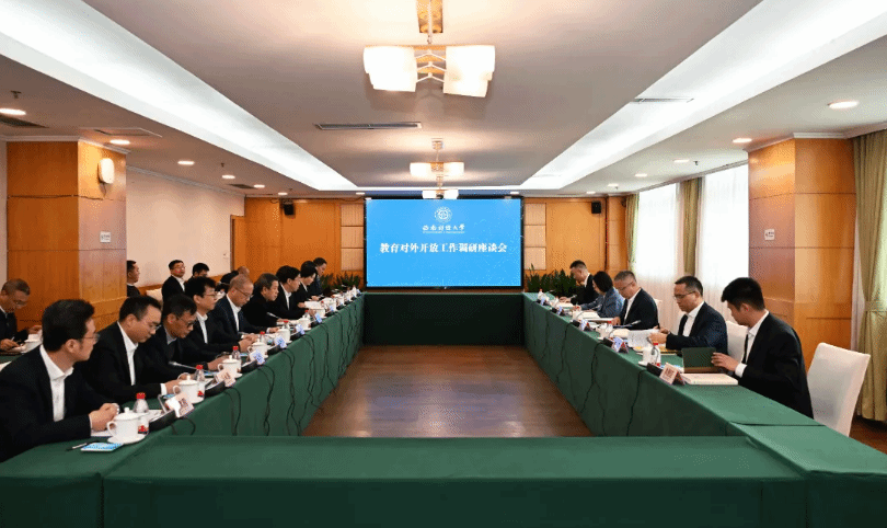 调研座谈会上,赵建军汇报了学校整体办学情况。他指出,学校近年来持续深化“新财经”发展战略,在学科核心竞争力和综合办学实力方面取得了显著提升。面向未来,学校将牢牢锚定建设教育强国这一目标,通过推进高水平教育对外开放,全面推动学校实现高质量发展。随后,李永强重点汇报了学校教育对外开放工作情况,表示学校将进一步发挥区位优势,增强战略主动性,通过一系列务实举措持续提升学校国际知名度和影响力。