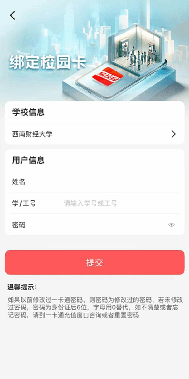线上充值:学生可通过“易校园”手机APP随时为校园卡进行线上充值。